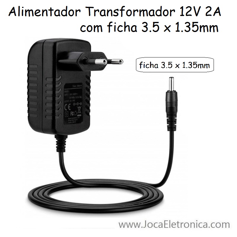 NOTA: Este transformador alimentador possui uma ficha de Ø3.5 x 1.35mm, ou seja uma ficha mais fina que o habitual!