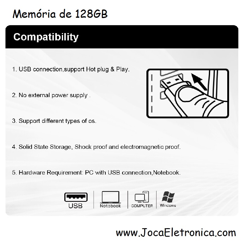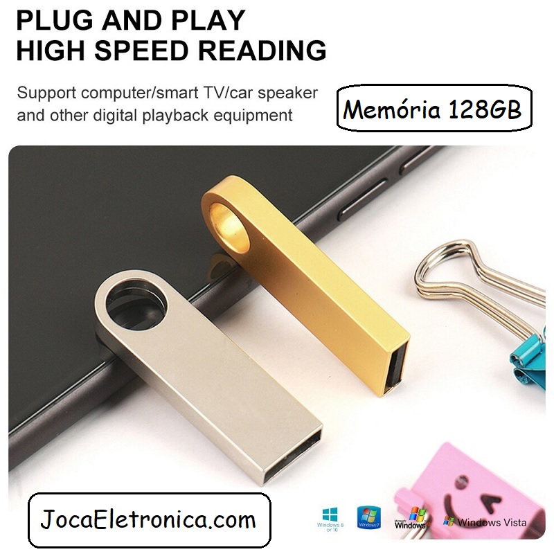 Inclui: 1 x Memória Pen USB 128GB de Alumínio.